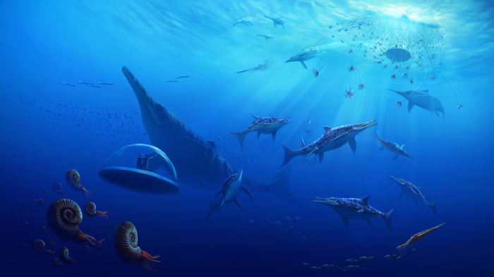 观众仅需佩戴一副VR头显,就能与家人和朋友轻松同游、自由行走,体验逼真的场景感,领略地球诞生至今35亿年来每个主要时期的生命演变。