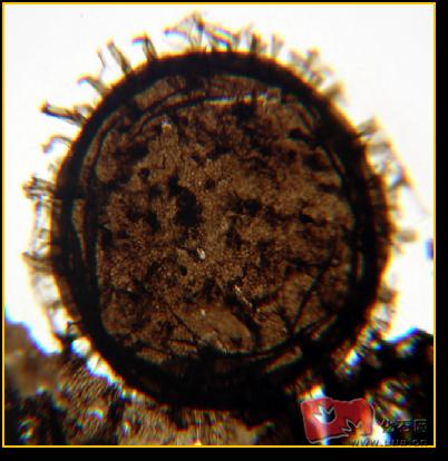 上图(left figure):Trachyhystrichosphaera aimika 埃米卡拟粗面刺球藻