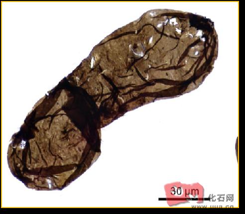 下图(right figure):Shuiyousphaeridium macroreticulatum 大网水幽藻