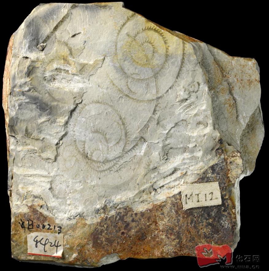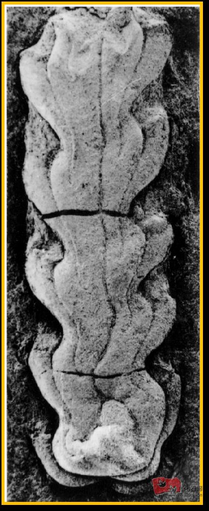 左:Undulograptus sinodentatus 中国齿状波曲笔石